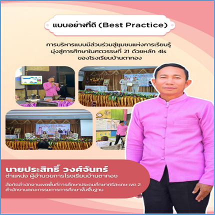 วิธีปฏิบัติที่เป็นเลิศการบริหารแบบมีส่วนร่วมสู่ชุมชนแห่งการเรียนรู้มุ่งสู่การศึกษาในศตวรรษที่ 21 ด้วยหลัก4LS ของโรงเรียนบ้านตาทอง 12 ก.ย. 68